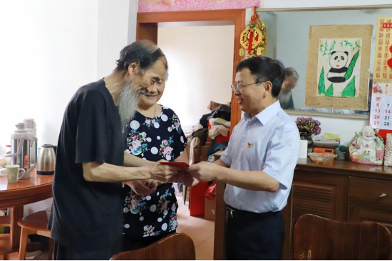 曾泽鑫走访慰问了老党员曾祥运、张育骥,看望了困难党员曾万海,和他们亲切交流,详细了解他们生活上的难处,给他们送上慰问金,并祝他们身体健康。