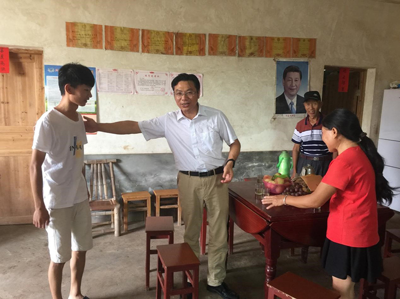 7月19日,党委副书记曾泽鑫在基础医学院党委书记颜剑和学工处有关人员的陪同下前往兴国县走访慰问部分家庭经济困难的学生,实地了解学生家庭情况。