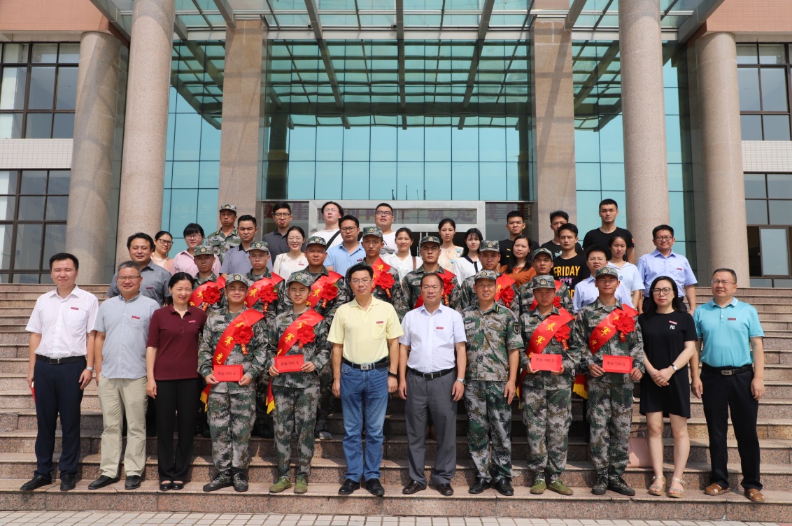 9月8日上午,赣南医学院2019年大学生参军入伍欢送会在黄金校区召开。学校党委副书记曾泽鑫、党委委员、副校长叶军明出席会议,武装部、宣传部、学工处、团委等部门领导、各二级学院负责人、学工办负责人、12名参军入伍新兵及班主任、在校生代表参加欢送会。