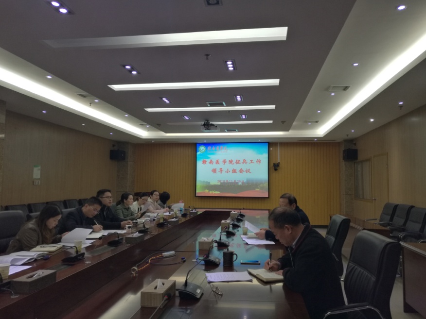 王小敏传达学习了江西省征兵办公室、教育厅《关于组织开展2020届大学毕业生“携笔从戎、绽放青春”主题征兵宣传活动的通知》文件精神。汇报了我校2019年征兵工作开展情况,对2020年征兵工作进行安排和部署,组织开展征兵业务培训。