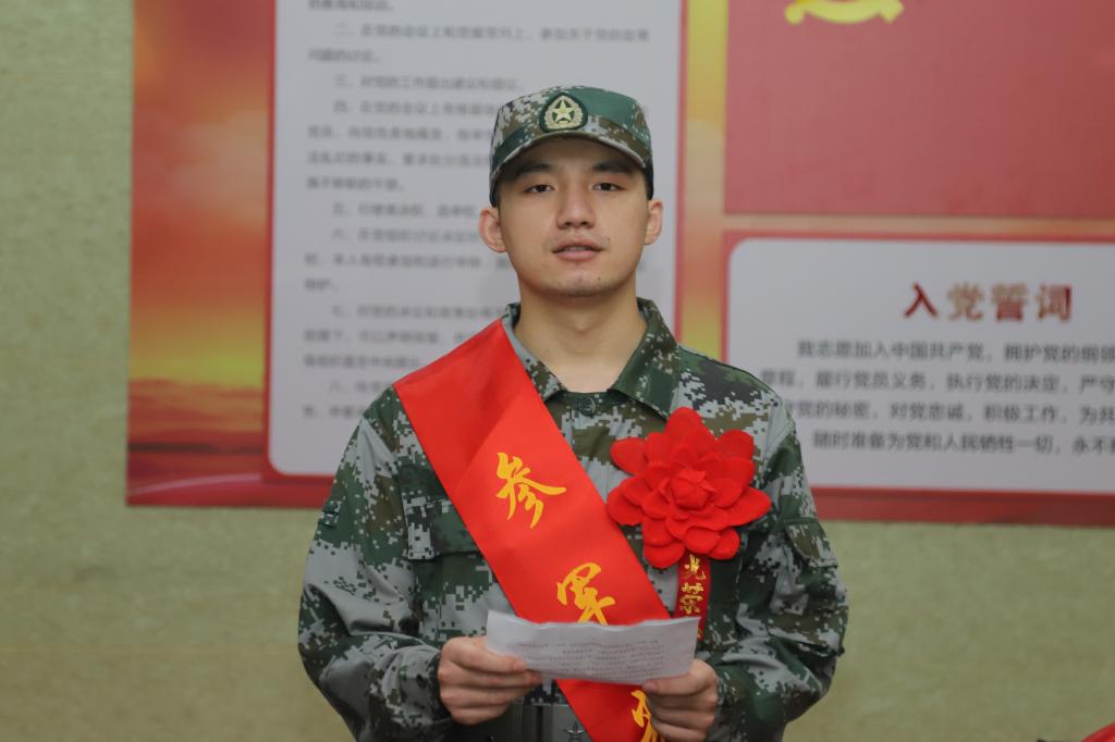 欢送会在庄严的国歌声中开始。武装部部长王斯坤宣布了章贡区征兵工作办公室批准何健生、刘志凌2人应征直招士官、郑鹏等6人服义务兵役的命令。叶军明分别为每一名新兵披上“参军光荣”授带、戴上红花,并颁发奖金。